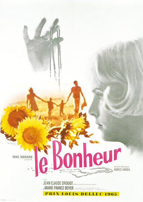 > 18h30 LE BONHEUR d’Agnès Varda, 1964/France/Fiction/1h25 avec Jean-Claude Drouot. Un menuisier aime sa femme, ses enfants et la nature. Ensuite il rencontre une autre femme, une postière, qui ajoute du bonheur à son bonheur. Toujours très amoureux de sa femme, il ne veut pas se priver, ni se cacher, ni mentir.
