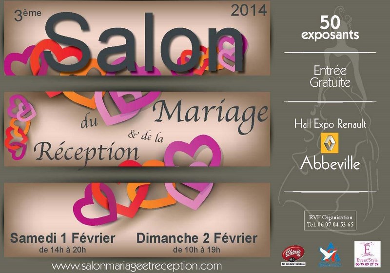 Des ateliers créatifs, coiffure et maquillage seront proposés tout au long du week-end, sans oublier 5 défilés de la mode & du mariage 2014, avec les collections de robes, cocktail et costumes : samedi, à 15h et 17h30 et dimanche à 11h30, 15h et 17h30. Les visiteurs pourront également assister à des démonstration d’activités professionnelles : show coiffure, essais maquillage, compositions florales : samedi et dimanche à 16h15. 14h/20h, Hall expo Renault Abbeville, 102 route de Doullens > jusqu’au 2 février 10h/19h,