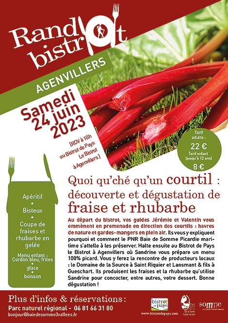 Jérémie et Valentin, vos guides, vous emmènent en direction des courtils pour vous expliquer comment les préserver. Le tout suivi d’un menu 100% picard chez Sandrine, Bistrot de Pays à Agenvillers ! Vous y rencontrerez ensuite les producteurs locaux de fraise et de rhubarbe avec qui travaille Sandrine. Pensez à réserver !