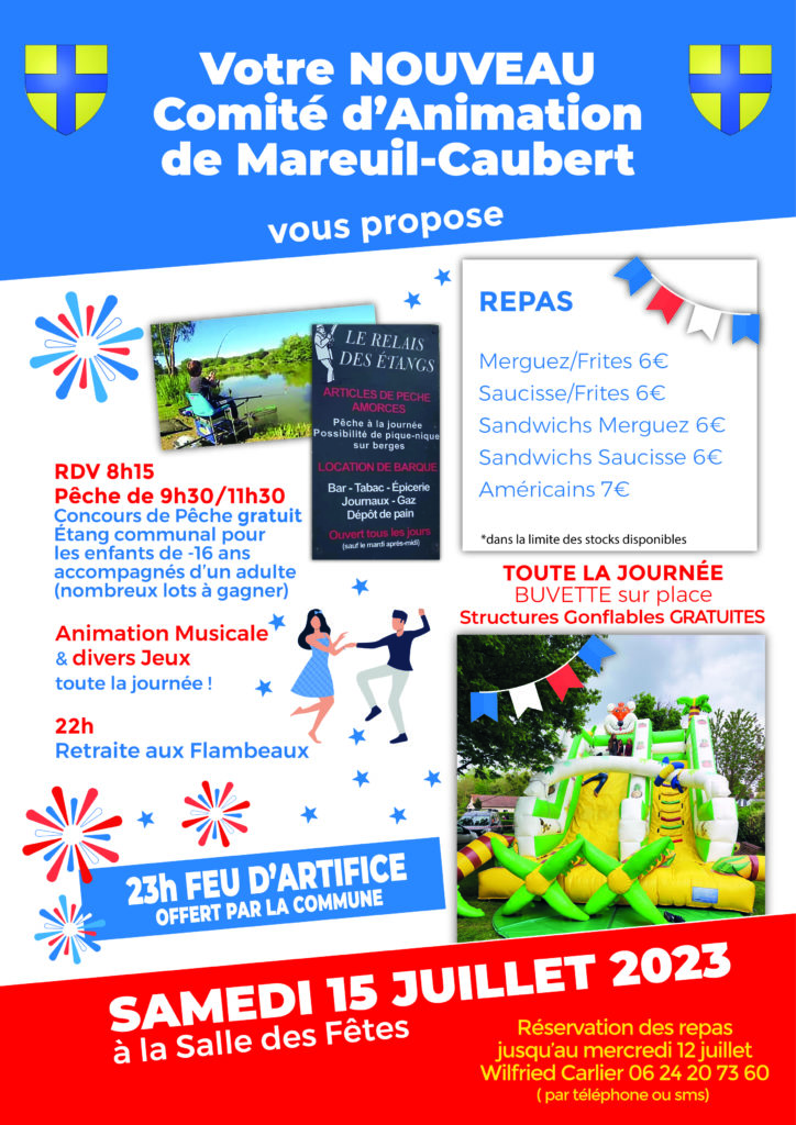 JOURNÉE FÊTE NATIONALE Animations musicales et jeux toute la journée, structures gonflables, petite restauration. 22h, Retraite aux Flambeaux. 23h, Feu d’Artifice sur les étangs.