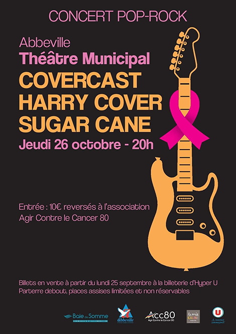 Trois groupes de la scène pop rock régionale réunis sur la scène du Théâtre Municipal pour une bonne cause. C’est une date exceptionnelle à ne pas rater ! Concert solidaire pour la lutte contre le cancer, droits d’entrée reversés à l’association « Agir Contre le Cancer 80 ». Parterre debout, places assises limitées et non réservables.