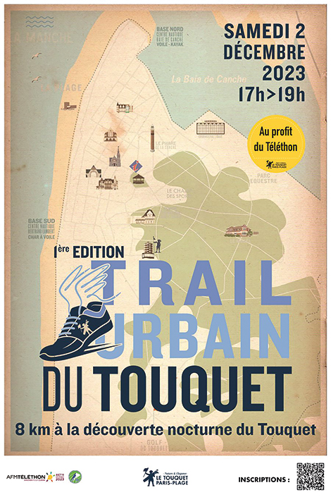 En avant-première du Téléthon, le 1er Trail Urbain du Touquet-Paris-Plage invite à une course ou marche à pied à travers la ville à la découverte des monuments et illuminations de Noël, 8 kms à la découverte nocturne du Touquet, non chronométré. Il passera dans plusieurs endroits clés du Touquet, illuminés, et notamment par le Village de Noël de la Place Quentovic. Des surprises attendent les participants ! Le « Café Heureux » tiendra son stand de boissons chaudes et de vente de crêpes & gaufres à la Salle des 4 Saisons, lieu d’arrivée du Trail. Course nature organisée en collaboration avec le TAC Athlétisme. Les recettes seront reversées au Téléthon. Accessible à tous. Durée 2h.