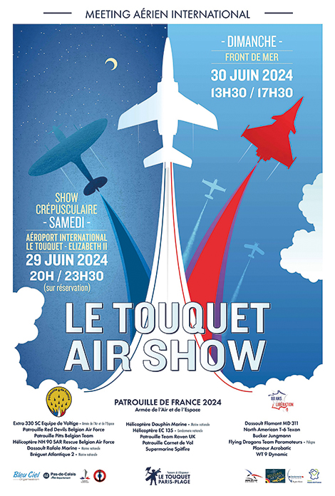 Pour la 3ème année consécutive, le Touquet Air show revient au Touquet-Paris-Plage. Un spectacle aérien d’exception où se succéderont une quarantaine d’aéronefs dont la célèbre Patrouille de France. Une véritable fête aérienne qui permettra à tous de découvrir ou redécouvrir le monde de l’aviation. Un spectacle gratuit et ouvert à tous qui se déroulera sur le front de mer. L’événement est labellisé «80 ans de la libération».