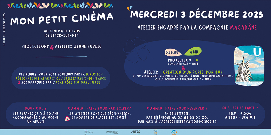 Tarif 4€50/film et atelier gratuit.
