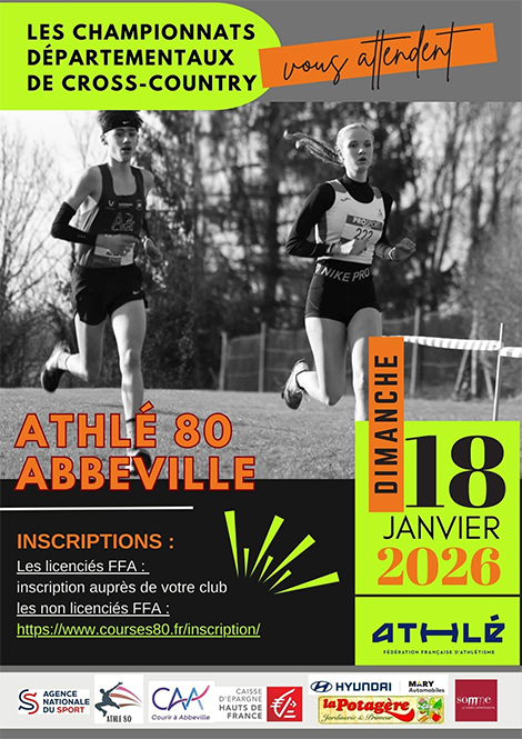 Cross-country départemental. Championnats de la Somme de cross-country FFA, organisés par le club Courir à Abbeville et le Comité Départemental d’Athlétisme de la Somme. Inscription ouverte également aux non licenciés.