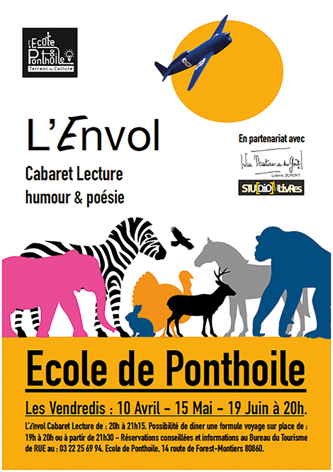 À partir de 19h. Cabaret de Lecture de 20h/21h15. Théâtre du Monde Entier, École de Ponthoile.