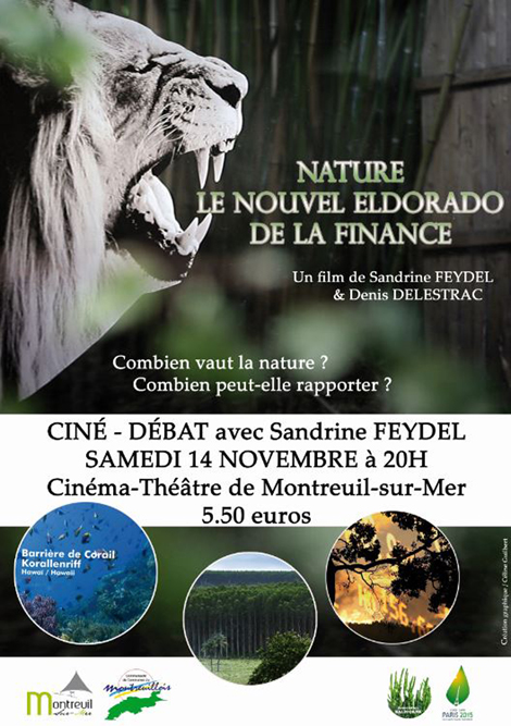 En partenariat avec l’association « L’atelier Citoyen » et l’association « Salicorne », une soirée est organisée le Samedi 14 novembre à 20h au Cinéma autour du film de Sandrine Feydel et Denis Delestrac : « Nature, le nouvel eldorado de la finance ».