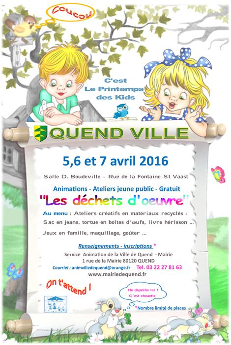 Spécial jeune public, le « Printemps des Kids » aura pour thématique « Les Déchets d’œuvre », animations – ateliers en matériaux recyclés.