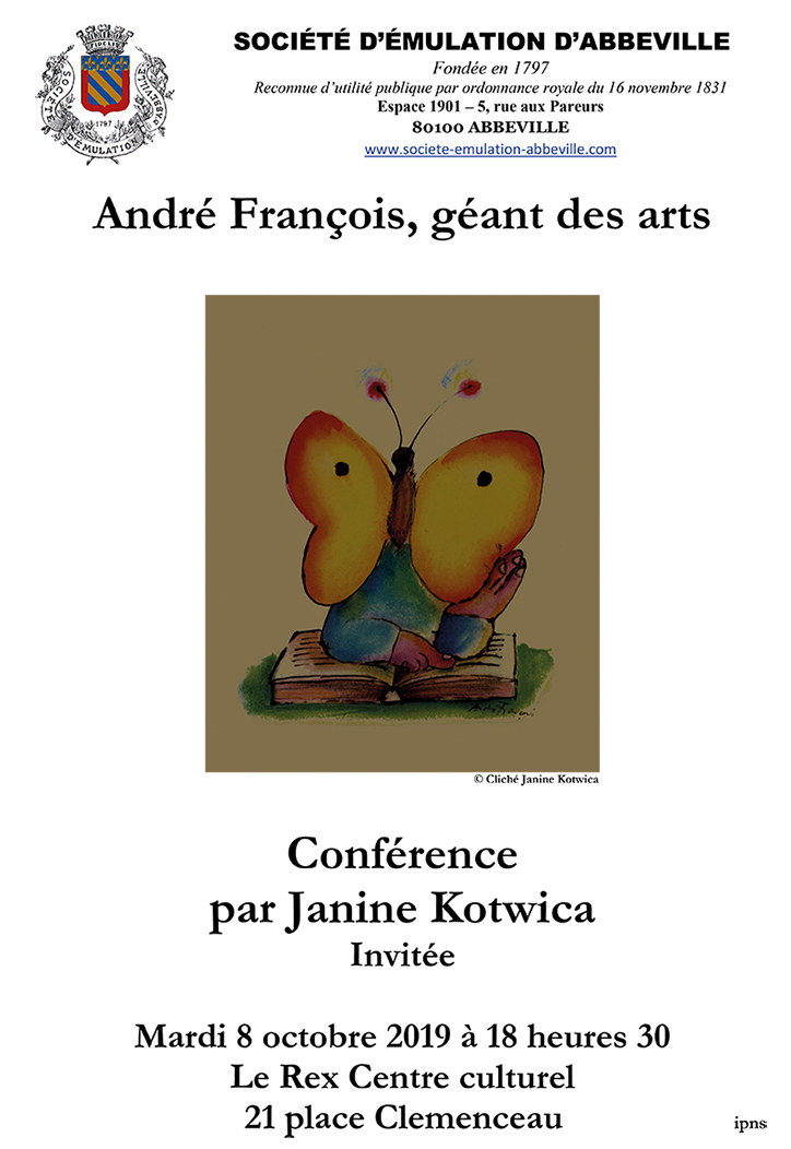 Mme Janine Kotwica, critique spécialisée dans l’illustration et les arts graphiques, commissaire d’expositions d’originaux en Europe, est l’auteur de nombreux articles dans diverses revues spécialisées. Elle assure des formations aux métiers du livre en France et à l’étranger. Amie d’André François et de sa famille, elle a fondé le Centre André François dont elle fut, de 2010 à 2014, la directrice artistique.