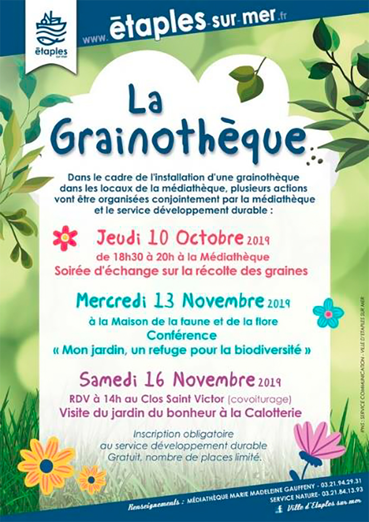 Soirée d’échange sur le fonctionnement de la récolte de graines. L’animateur vous apportera toutes les informations et conseils utiles pour devenir un AS du jardinage. 18h30/20h, Médiathèque. Infos : 03 21 94 29 31