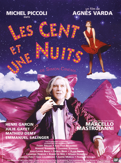> 20h LES CENT ET UNE NUITS d’Agnès Varda, 1994/France/Fiction/2h15 avec Michel Piccoli, Julie Gayet, Marcello Mastroiani, Gérard Depardieu, Jean-Paul Belmondo, Mathieu Demy, Alain Delon, Catherine Deneuve, en présence de Didier Rouget et Salomé Blechmans. Monsieur Cinéma est presque centenaire. Ex- acteur, producteur et réalisateur, il croit être le cinéma à lui tout seul et vit dans un château-musée avec son majordome, Firmin. Il perd la boule et embrouille tout. Il engage alors une jeune cinéphile pour faire faire de l’aérobic à sa mémoire qui flanche. De nombreux visiteurs, des stars et un groupe de jeunes, animent sa vieillesse confuse et heureuse.