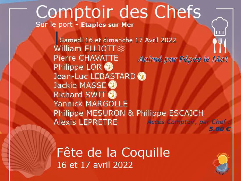 Le port d’Étaples-sur-Mer s’animera de nouveau lors du prochain week-end de Pâques, pendant 2 jours, à l’occasion de la 4ème édition de la Fête de la Coquille. La gastronomie et la musique sont toujours les ingrédients fondamentaux de cet événement. Les visiteurs pourront apprécier les animations des acteurs de l’environnement maritime, exposition sur le métier et les équipements des marins pêcheurs, démonstrations de ramendage et témoignages de matelotage, exercice de sauvetage en mer par hélitreuillage avec la Marine Nationale, démonstrations de l’association Chiens Sauveteurs aquatiques 62 à l’aide de chiens de type Terre Neuve, Labrador et Leonberg, découverte de la pratique de l’aviron sur la Canche encadrée par l’association Ivy hébergée au chantier naval d’Étaples, remise en jeu du trophée du concours d’ouverture de coquilles, atelier culinaire le samedi matin à Maréis. Le village des exposants sera animé par la présence de plus de 40 exposants et artisans. Organisé par l’AS Étaples football.