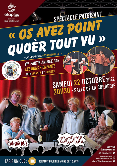Par l’association « T’in souvyin’tu ». Un spectacle constitué de saynètes, danses, chants… et de beaucoup d’amour d’une langue et d’une région ! 1ère partie animée par les Bons Z‘enfants (danses et chants).