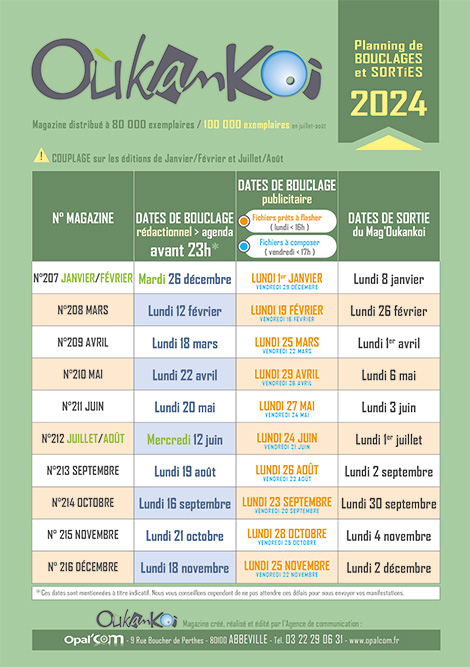 Voici le planning des bouclages rédactionnel et publicitaire ainsi que les dates de sortie du Magazine Oukankoi …